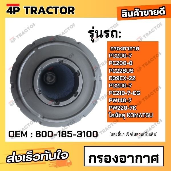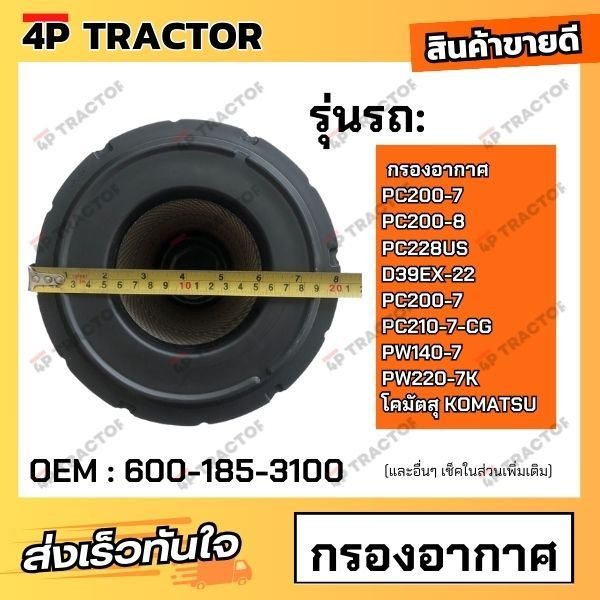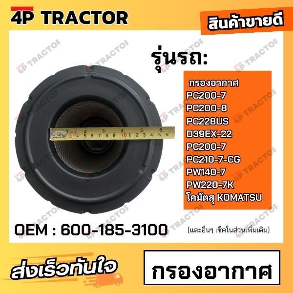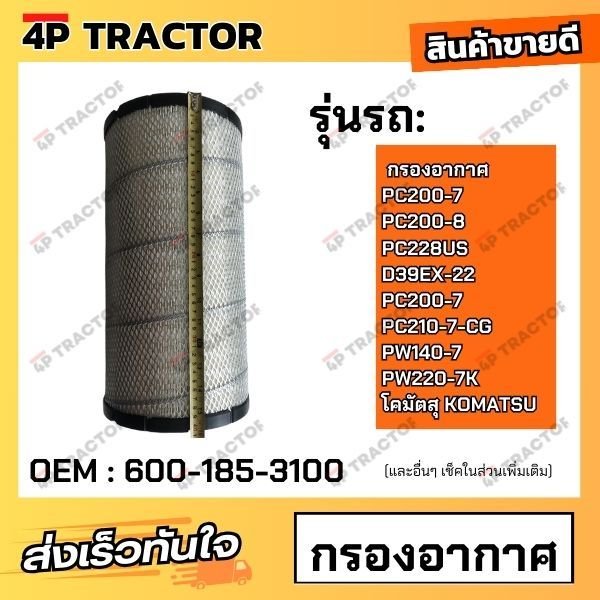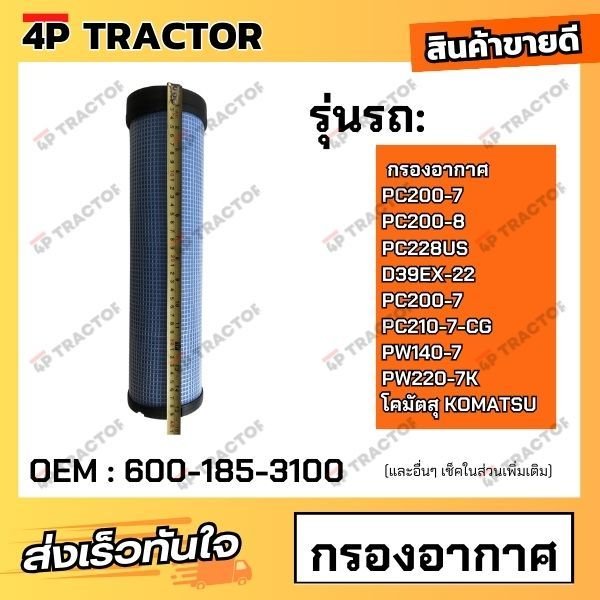 กรองอากาศ PC200-7 PC200-8 PC228US D39EX-22 PC200-7 PC210-7-CG PW140-7 PW220-7K โคมัตสุ KOMATSU *ราคารวมทั้งชุด นอก-ใน (OEM : 600-185-3100 )