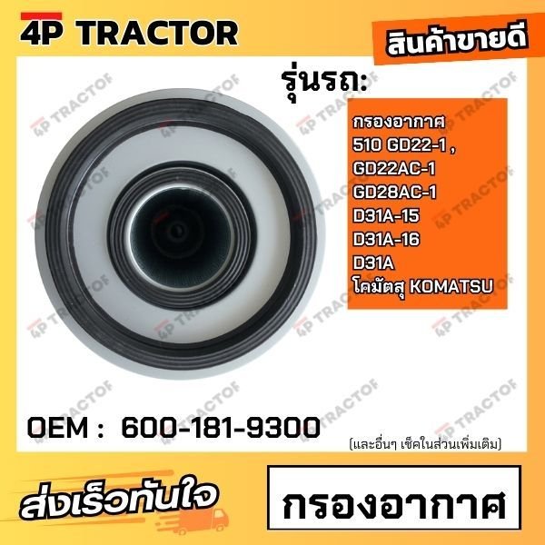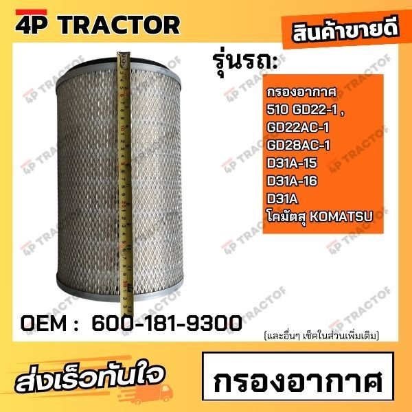กรองอากาศ 510 , GD22-1 , GD22AC-1 ,GD28AC-1 , D31A-15 , D31A-16 , D31A โคมัตสุ KOMATSU *ราคารวมทั้งชุด นอก-ใน (OEM : 600-181-9300 )