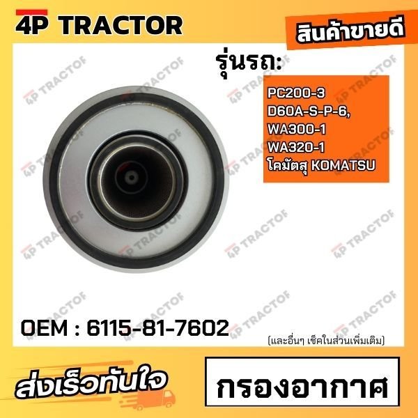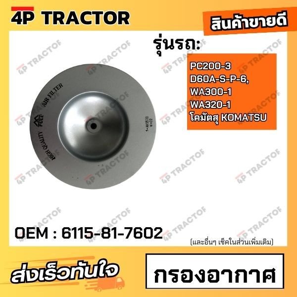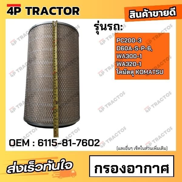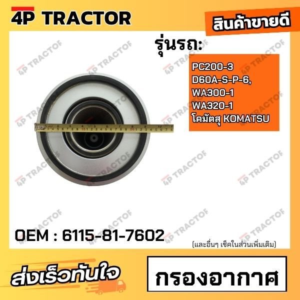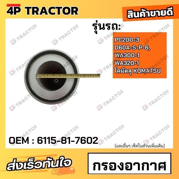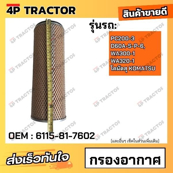 กรองอากาศ PC200-3, D60A-S-P-6, WA300-1, WA320-1 โคมัตสุ KOMATSU *ราคารวมทั้งชุด นอก-ใน (OEM : 6115-81-7602 )