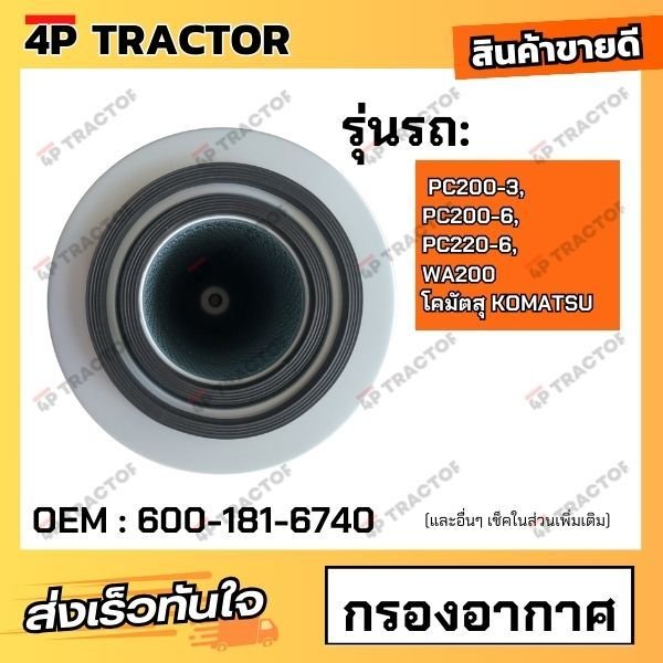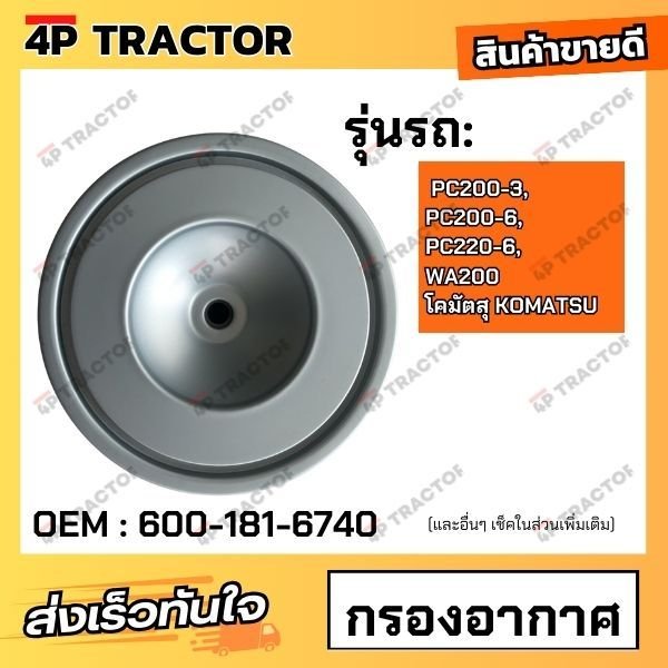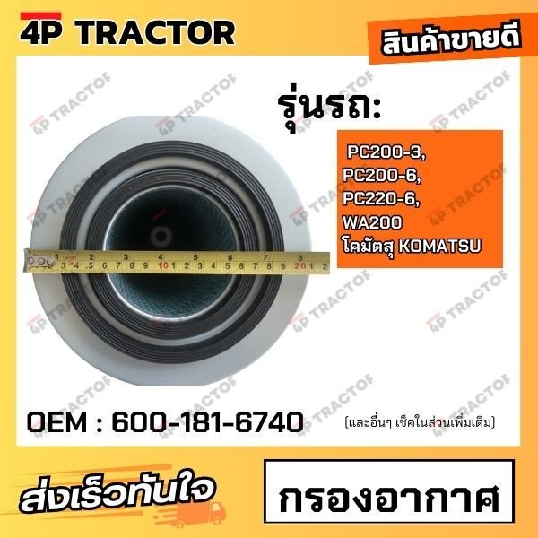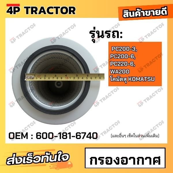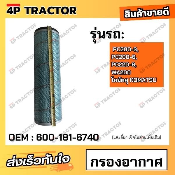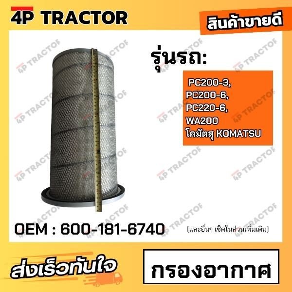 กรองอากาศ PC200-3, PC200-6, PC220-6, WA200 โคมัตสุ KOMATSU *ราคารวมทั้งชุด นอก-ใน (OEM : 600-181-6740 )